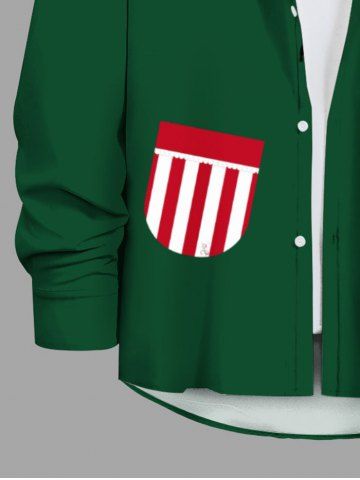 Plus Size Christmas Elf Candy Stripes Print Buttons Pocket Shirt For Men - Green - 2xl