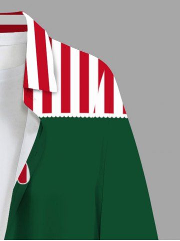 Plus Size Christmas Elf Candy Stripes Print Buttons Pocket Shirt For Men - Green - 6xl