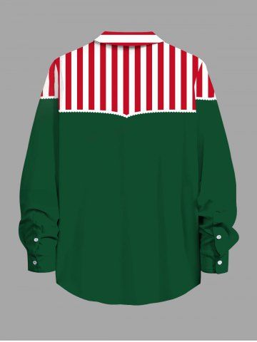 Plus Size Christmas Elf Candy Stripes Print Buttons Pocket Shirt For Men - Green - 7xl