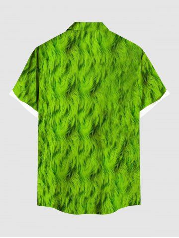Plus Size Christmas Elf Claws Print Buttons Pocket Shirt For Men - Green - Xl