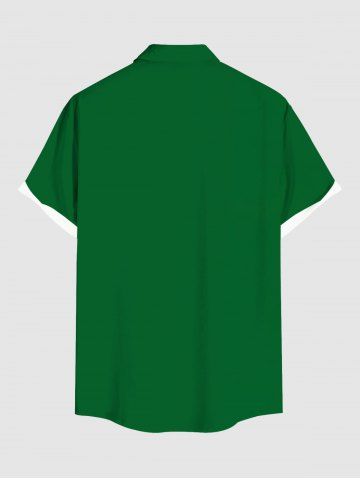 Plus Size Christmas Elf Print Buttons Pocket Shirt For Men - Green - M