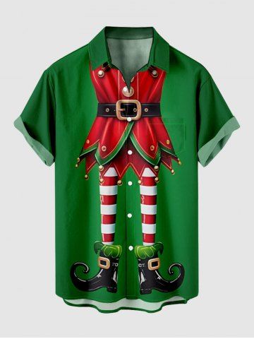 Men's Clothing > Plus Size Christmas Elf Print Buttons Pocket Shirt For Men