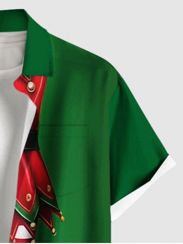 Plus Size Christmas Elf Print Buttons Pocket Shirt For Men - Green - 4xl