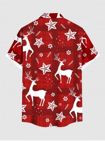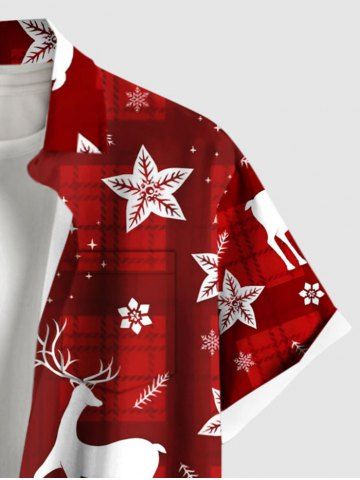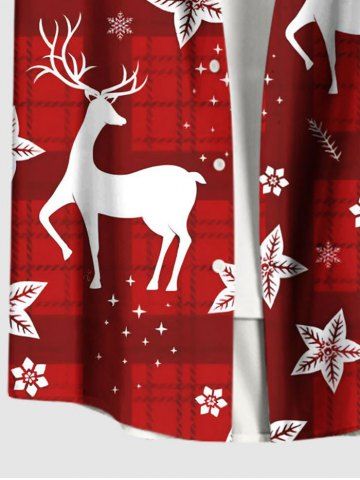 Plus Size Christmas Elk Flower Plaid Print Button Pocket Shirt For Men - Red - S
