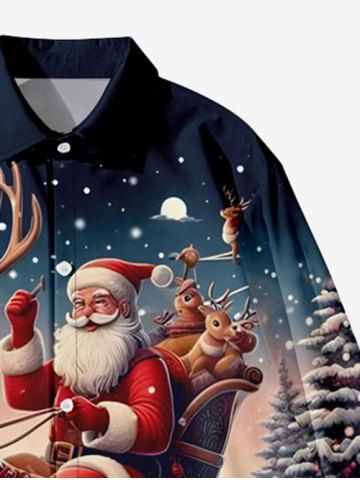 Plus Size Christmas Elk Santa Claus Tree Forest Snowflake Print Ombre Button Long Sleeves Shirt For Men - Multi-b - 7xl