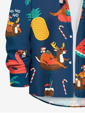 Plus Size Christmas Elk Santa Claus Watermelon Pineapple Coconut Tree Print Hawaii Button Shirt For Men - Deep Blue - 4xl