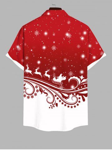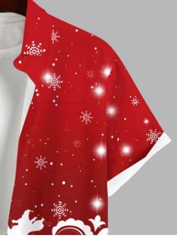 Plus Size Christmas Elk Sled Santa Claus Snowflake Colorblock Print Buttons Pocket Shirt For Men - Red - M