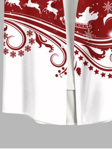 Plus Size Christmas Elk Sled Santa Claus Snowflake Colorblock Print Buttons Pocket Shirt For Men - Red - L