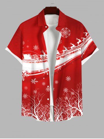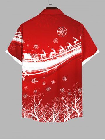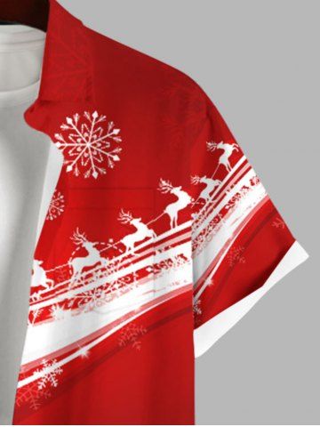 Plus Size Christmas Elk Sled Snowflake Colorblock Trees Print Buttons Pocket Shirt For Men - Red - 3xl