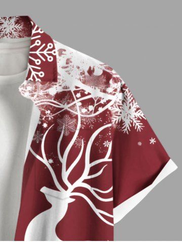 Plus Size Christmas Elk Snowflake Colorblock Print Buttons Pocket Shirt For Men - Cherry Red - S