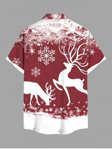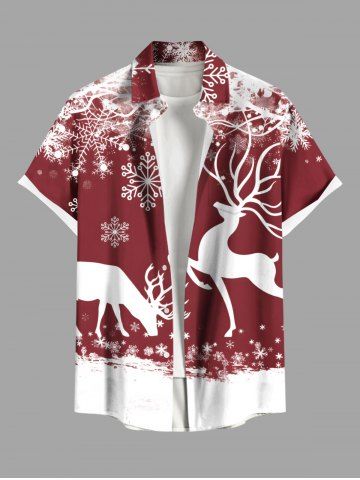 Plus Size Christmas Elk Snowflake Colorblock Print Buttons Pocket Shirt For Men - Cherry Red - L