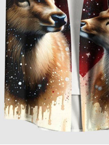 Men's Clothing > Plus Size Christmas Elk Snowflake Print Button Pocket Shirt For Men