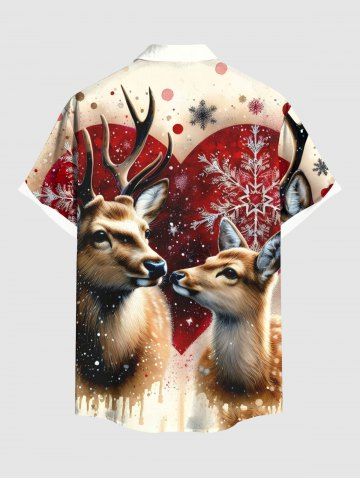 Men's Clothing > Plus Size Christmas Elk Snowflake Print Button Pocket Shirt For Men