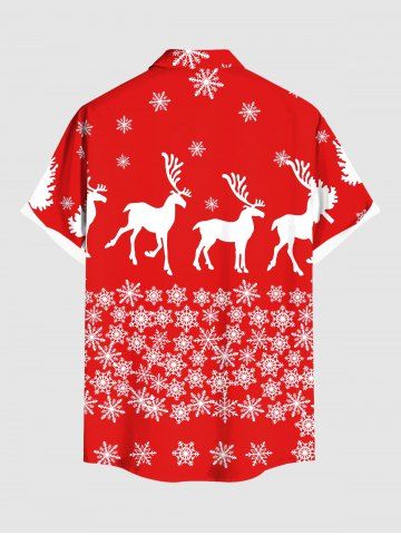 Plus Size Christmas Elk Snowflake Print Buttons Pocket Shirt For Men - Red - S