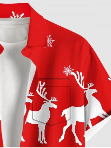 Plus Size Christmas Elk Snowflake Print Buttons Pocket Shirt For Men - Red - 4xl