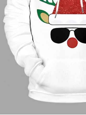Plus Size Christmas Elk Sunglasses Print Pocket Drawstring Hoodie For Men - White - Xl