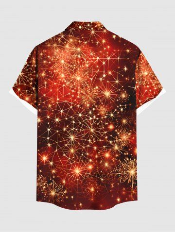 Plus Size Christmas Fireworks Spider Web Glitter 3D Print Buttons Pocket Shirt For Men - Orange - 6xl