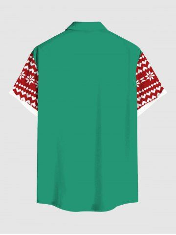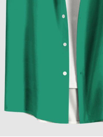 Plus Size Christmas Floral Pattern Print Buttons Pocket Shirt For Men - Green - 5xl