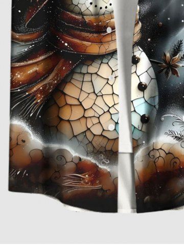 Plus Size Christmas Floral Snowman Street Light Print Buttons Pocket Shirt For Men - Black - 4xl