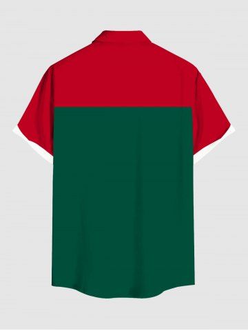 Men's Clothing > Plus Size Christmas Flower Leaf Holly Colorblock Print Button Pocket Shirt For Men