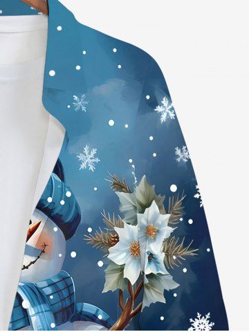 Plus Size Christmas Flowers Pine Nuts Snowman Snowflake Print Buttons Pocket Long Sleeve Shirt For Men - Blue - M