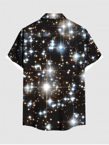 Plus Size Christmas Galaxy Star Glitter 3D Print Buttons Pocket Shirt For Men - Black - M