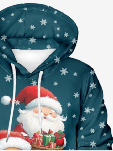 Plus Size Christmas Gift Santa Claus Snowflake Print Pocket Drawstring Pullover Long Sleeves Hoodie For Men - Green - 8xl