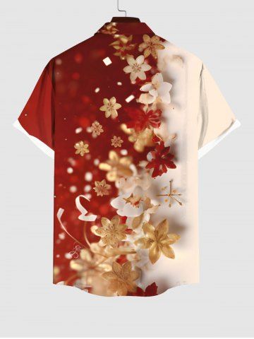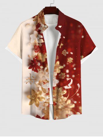 Plus Size Christmas Gilding Floral Print Ombre Button Pocket Shirt For Men - Multi-a - Xl
