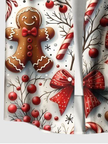 Men's Clothing > Plus Size Christmas Gingerbread Candy Holly Fruit Bowknot Snowflake Print Buttons Pocket Shirt For Men