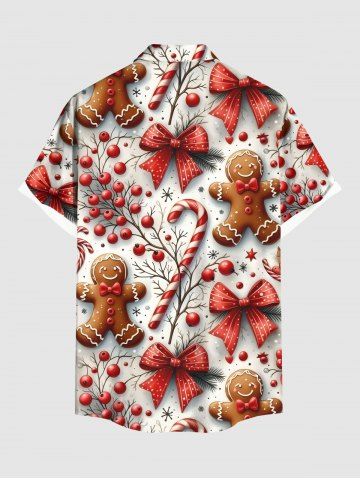 Plus Size Christmas Gingerbread Candy Holly Fruit Bowknot Snowflake Print Buttons Pocket Shirt For Men - Red - M