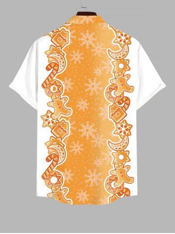 Plus Size Christmas Gingerbread Man Candy Donut Snowflake Colorblock Print Buttons Pocket Shirt For Men - Orange - M