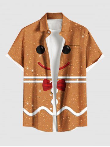 Plus Size Christmas Gingerbread Print Button Pocket Shirt For Men - Light Brown - 4xl