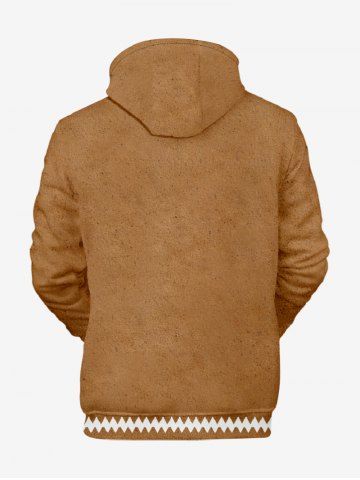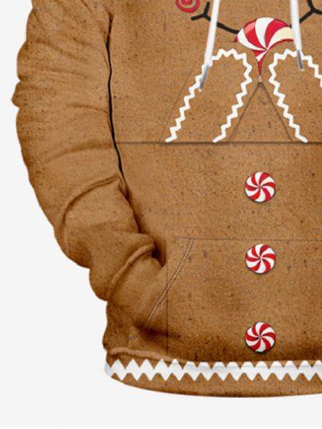 Plus Size Christmas Gingerbread Smile Face Candy Print Drawstring Pockets Hoodie For Men - Light Brown - M
