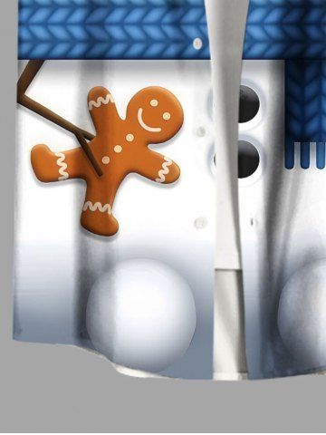 Plus Size Christmas Gingerbread Snowflake Snowman Hat Print Buttons Pocket Shirt For Men - Sky Blue - M