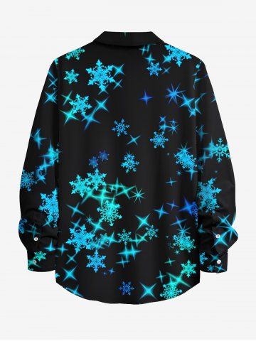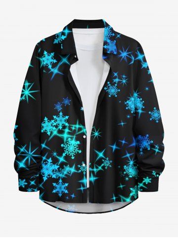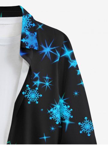 Plus Size Christmas Glitter Snowflake Stars Print Button Long Sleeves Shirt For Men - Black - 4xl