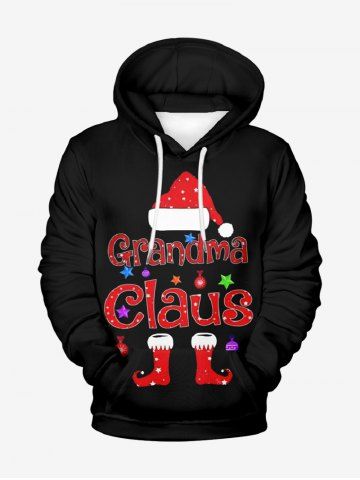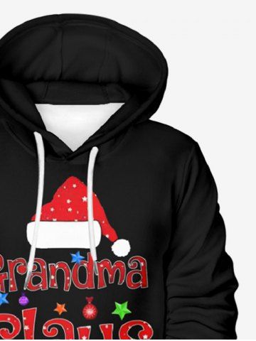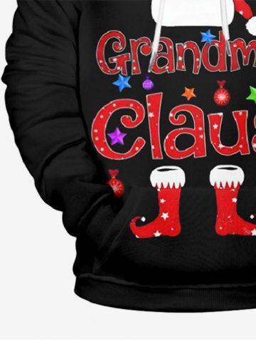 Plus Size Christmas Hat Ball Letters Stocking Print Pocket Drawstring Pullover Long Sleeves Hoodie For Men - Black - L