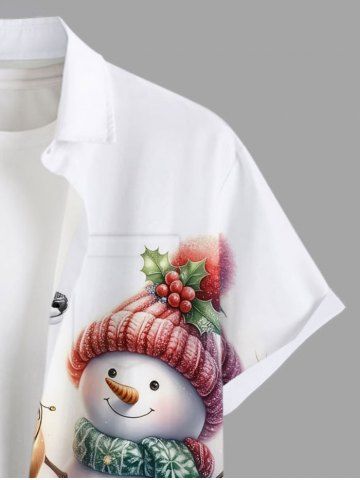 Plus Size Christmas Hat Elk Snowman Gift Box Print Buttons Pocket Shirt For Men - White - 4xl