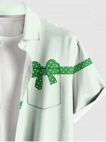 Plus Size Christmas Hat Gingerbread Polka Dots Ribbon Bowknot Print Buttons Pocket Shirt For Men - Green - L