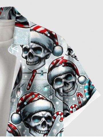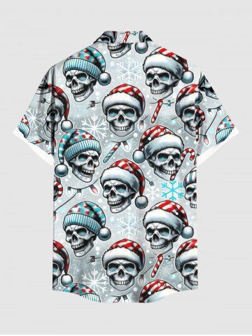 Plus Size Christmas Hat Light Skulls Candy Snowflake Print Buttons Pocket Shirt For Men - Light Gray - M