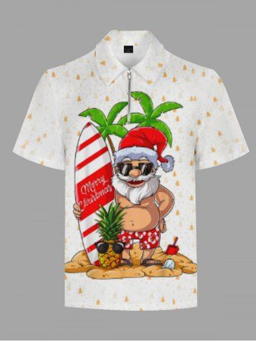 Plus Size Christmas Hat Santa Claus Coconut Tree Pineapple Skateboard Print Hawaii Zipper Polo Shirt For Men - White - Xl