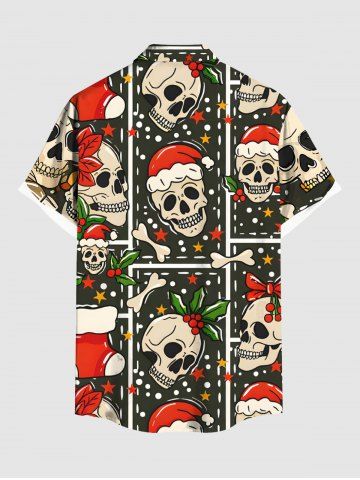Plus Size Christmas Hat Skull Holly Print Button Pocket Shirt For Men - Black - 2xl