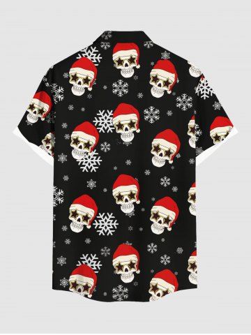 Plus Size Christmas Hat Snowflake Stars Skull Print Button Pocket Shirt For Men - Black - S