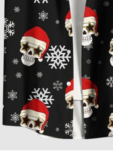 Plus Size Christmas Hat Snowflake Stars Skull Print Button Pocket Shirt For Men - Black - M