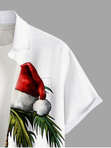 Plus Size Christmas Hat Snowman Coconut Tree Print Buttons Pocket Shirt For Men - White - 3xl