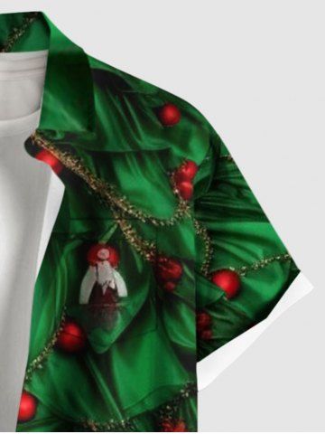 Plus Size Christmas Holly Chain Costume Pattern Print Button Pocket Shirt For Men - Deep Green - L
