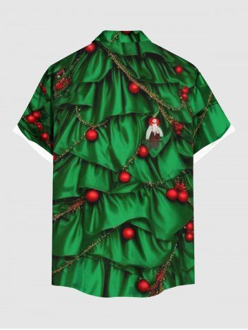 Plus Size Christmas Holly Chain Costume Pattern Print Button Pocket Shirt For Men - Deep Green - 4xl