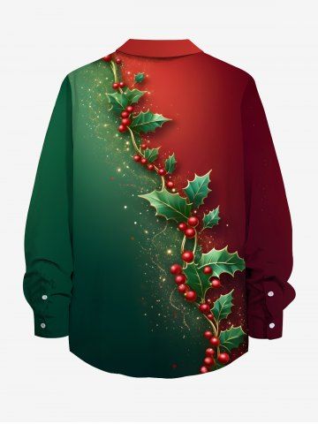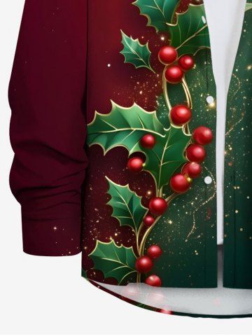 Men's Clothing > Plus Size Christmas Holly Fruit Leaf Colorblock Glitter 3D Print Buttons Pocket Shirt For Men