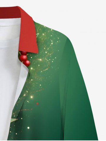 Plus Size Christmas Holly Fruit Leaf Colorblock Glitter 3D Print Buttons Pocket Shirt For Men - Green - Xl