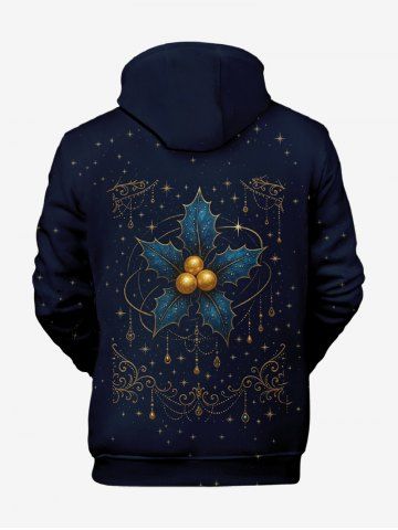 Men's Clothing > Plus Size Christmas Holly Fruit Leaf Star Tassel Print Drawstring Pockets Hoodie For Men