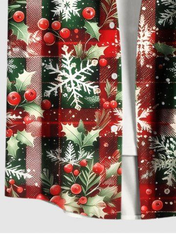 Men's Clothing > Plus Size Christmas Holly Fruit Snowflake Plaid Print Buttons Pocket Shirt For Men